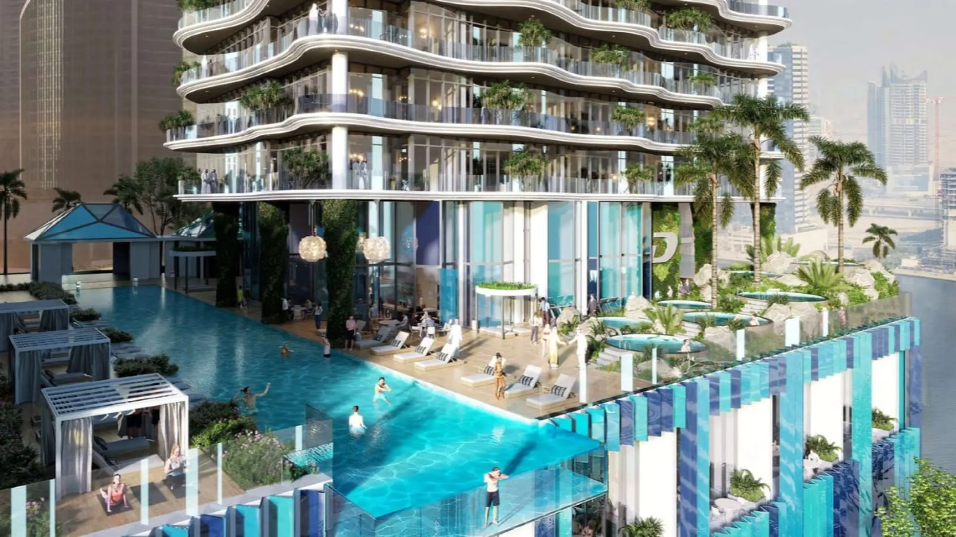 Set to become a stunning adornment of Business Bay, Chic Tower is an upscale 41-storey tower by DAMAC Properties in collaboration with the world-renowned de GRISOGONO jewellery brand. For a distinctive look, the high-end skyscraper will feature a cascade of undulating terraces inspired by the waves of Dubai Water Canal. The terraces will descend from a stepped roof, where water will trickle from one pool to another.Features