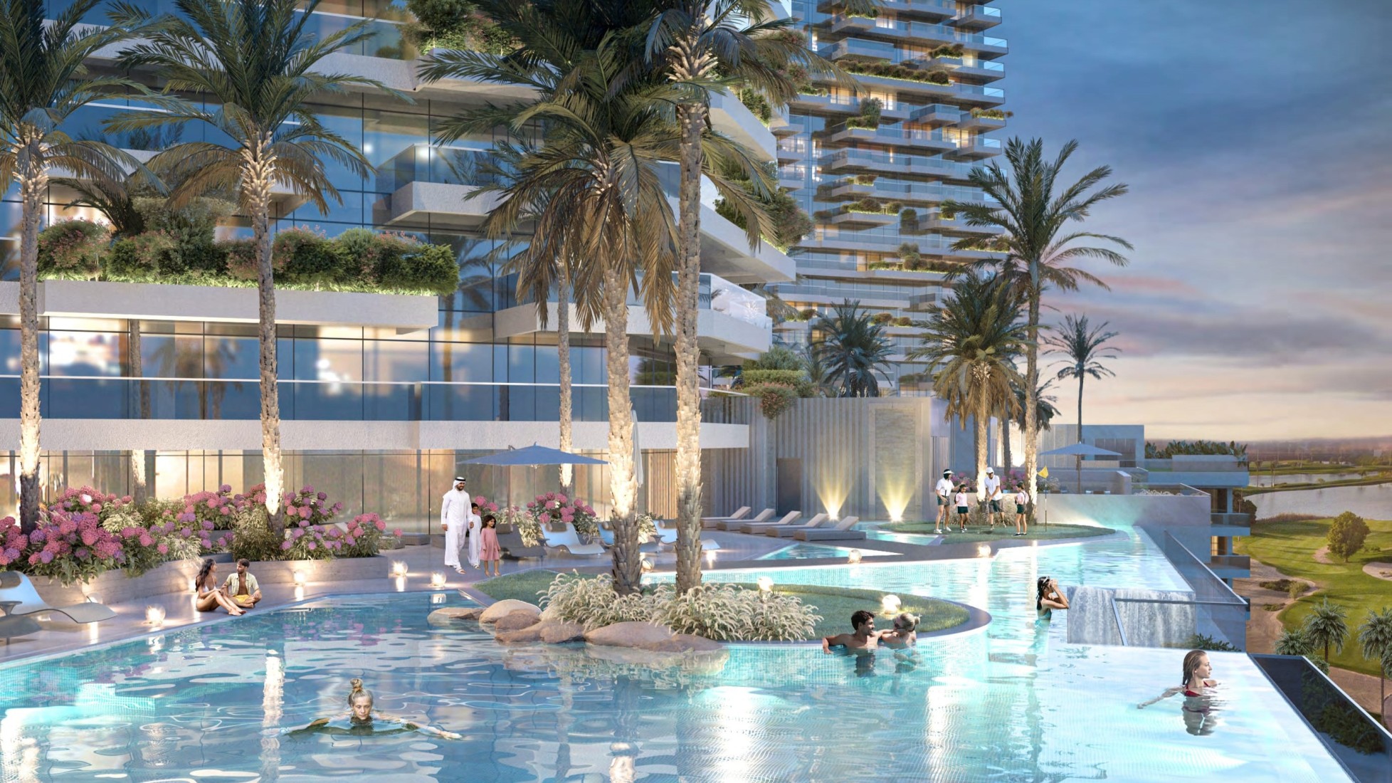 Golf Greens at Damac Hills, Dubai is an exceptional residential twin tower from Damac Properties with luxurious and elegant 1 and 2 bedroom apartments. The complex has an amazing infrastructure, decorated with a small amount of greenery. This luxurious facility is the center of many essential leisure amenities and services, as well as stunning views of the lush greenery and Trump International Golf Course. Each tower consists of spacious and exquisitely designed houses with an elegant layout and the smallest details throughout the room. Thanks to intelligent technologies in the rooms, kitchens and bathrooms, high-quality equipment and fittings, as well as soothing furniture, residents can enjoy a luxurious life with many other amenities.Features