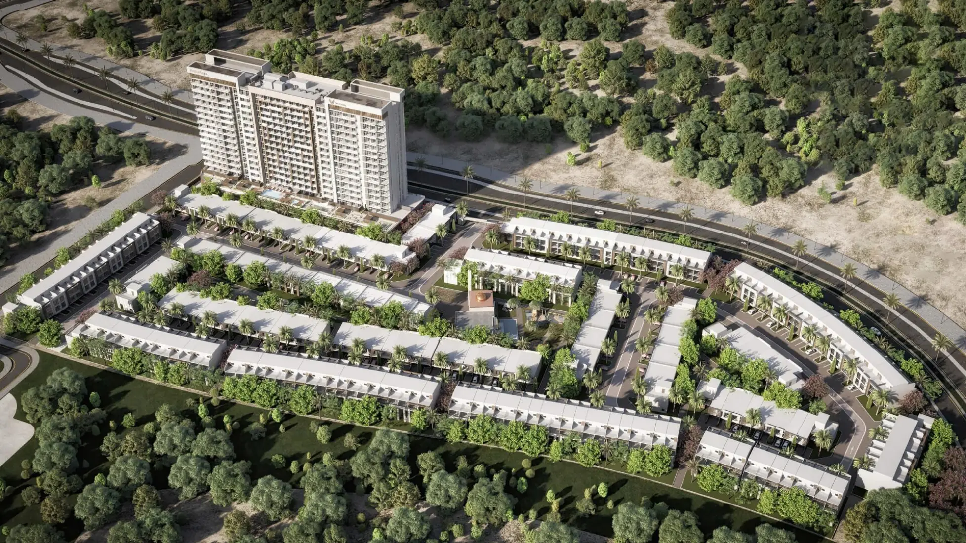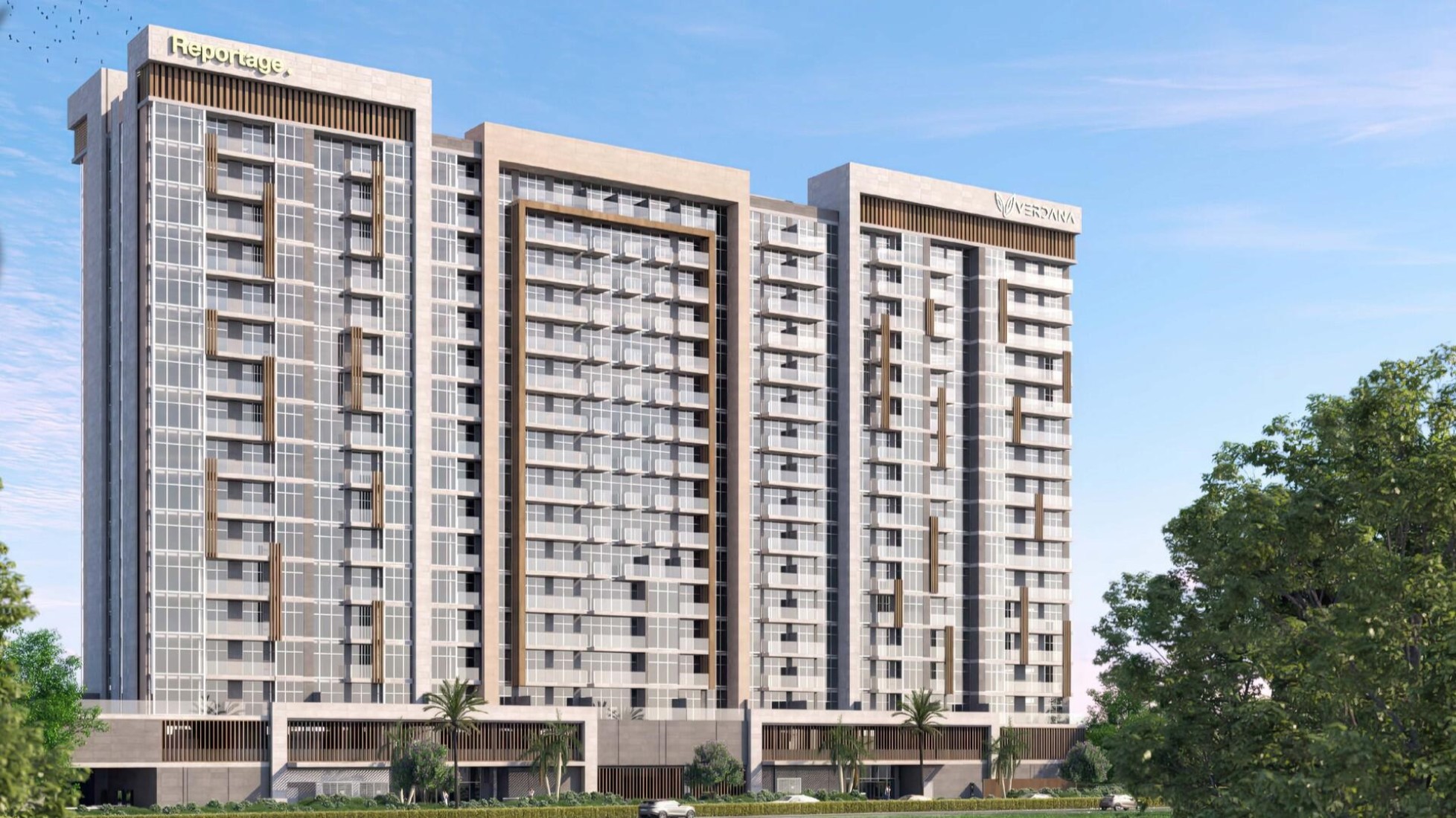 Verdana VII Residences by Reportage offers a contemporary lifestyle within an integrated community of 392 apartments, featuring studio, one-, two-, and four-bedroom units. The exterior design seamlessly combines modern architecture with natural elements, ensuring each unit is bathed in natural light through large panoramic windows. The building’s sleek design reflects sophistication while maintaining a welcoming ambiance for residents. Verdana VII Townhouses by Reportage is a stunning residential development located in the heart of Dubai, offering an ideal blend of nature and modernity. Comprising 293 units, the project includes a variety of two-, three-, and four-bedroom townhouses, designed with meticulous attention to detail and functionality. The townhouses are characterized by their elegant façades, private balconies, and terraces that overlook the lush landscaped areas, providing residents with serene views and a peaceful atmosphere.Features