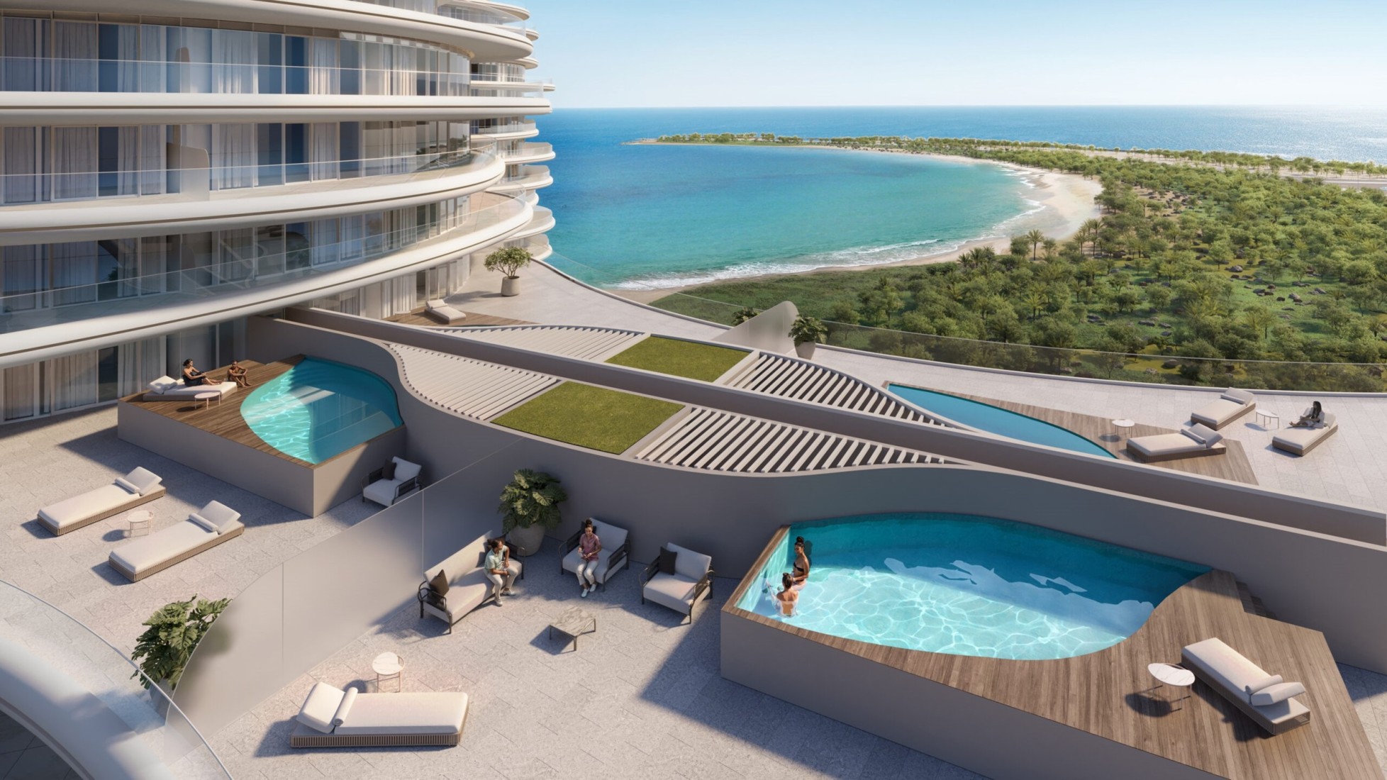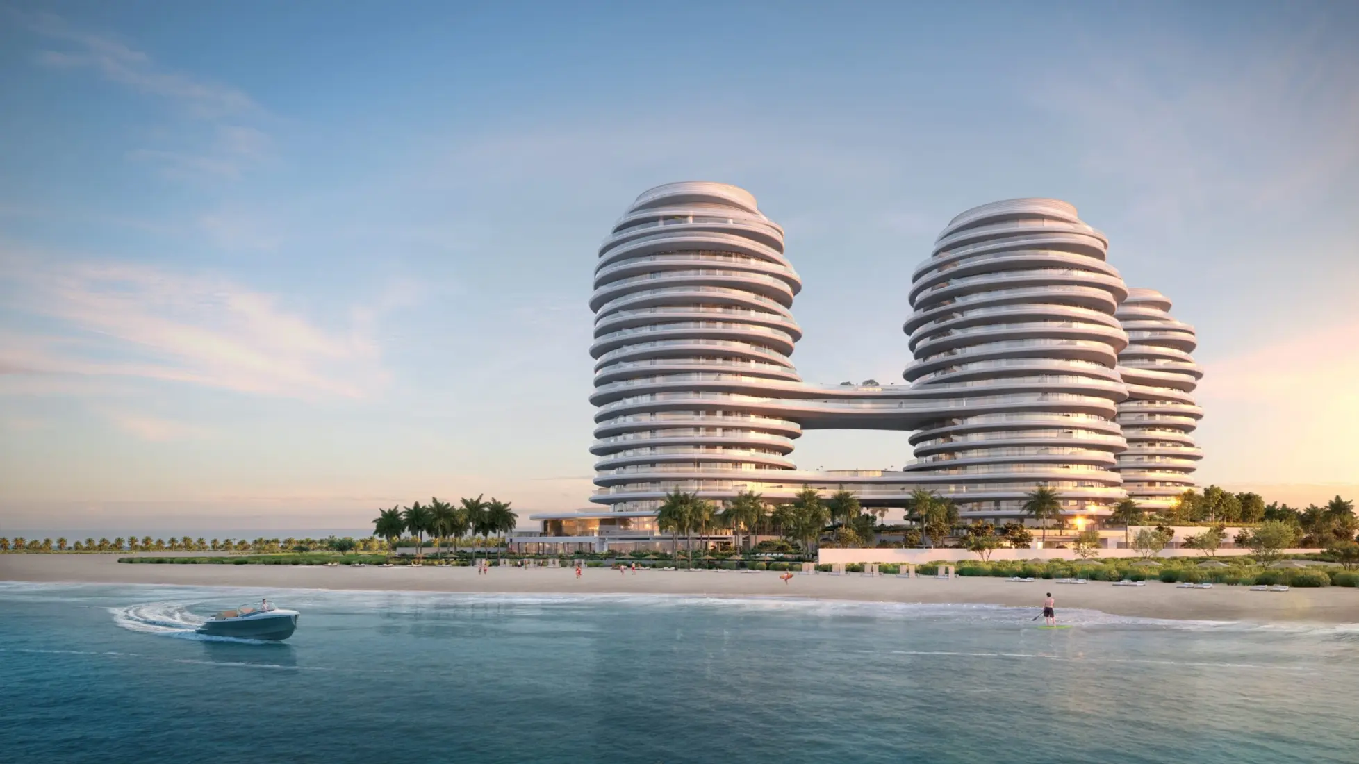 La Mer by Elie Saab comprises three distinctive branded towers situated on Al Marjan Island. This luxurious development portrays shoreline living with its unparalleled blend of bespoke and architectural finesse. Each tower embodies the visionary elegance synonymous with Elie Saab, offering residents a bespoke lifestyle experience characterized by panoramic views of the azure Gulf waters and meticulously crafted interiors.Features
