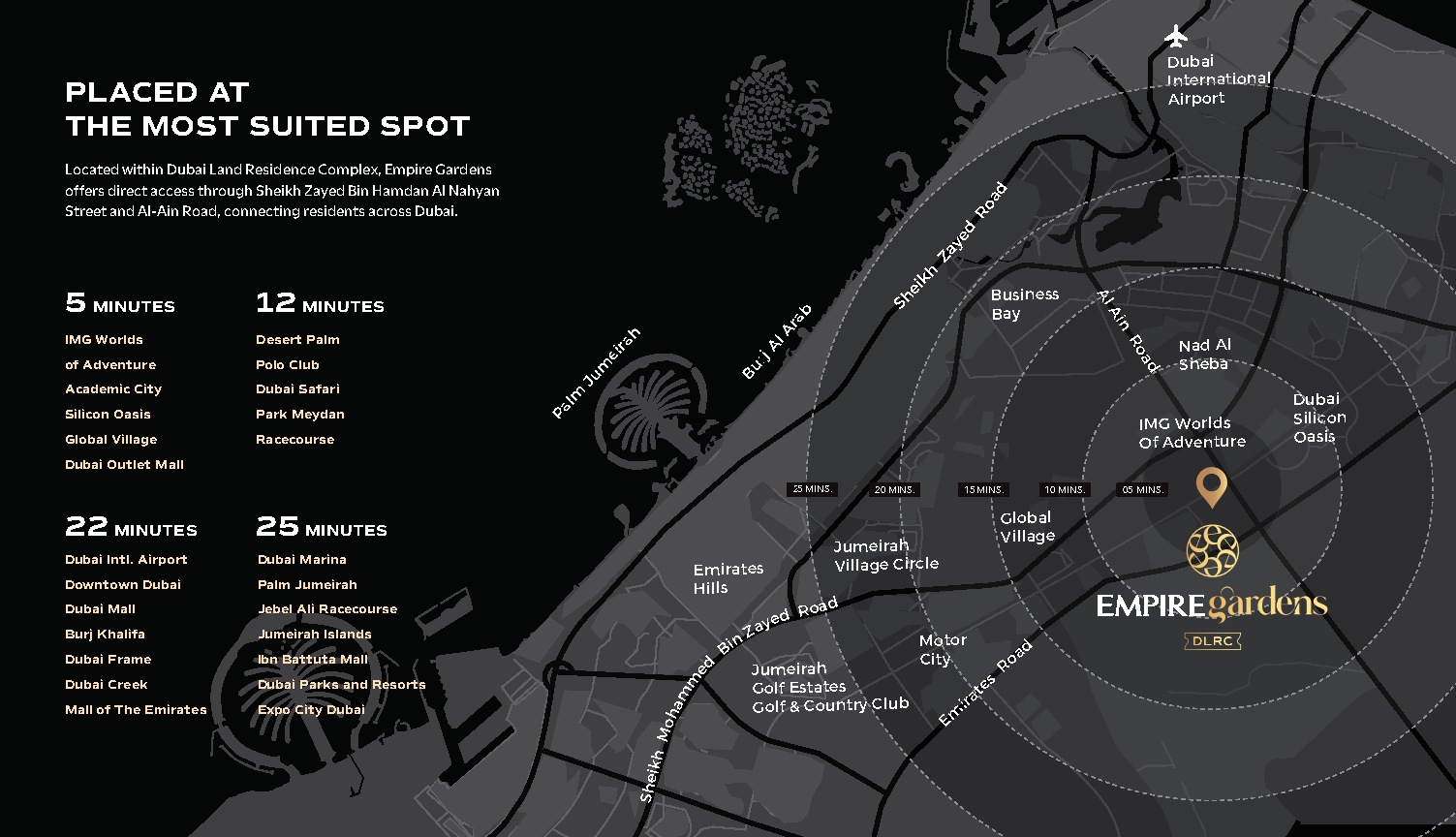 Empire Gardens at Dubai Land Residence Complex redefines modern living through elegant architecture and sophisticated design. The project stands as a statement of refined style, with a sleek façade featuring glass-lined balconies, soft curves, and warm, natural tones that seamlessly blend contemporary aesthetics with comfort. Designed to inspire a sense of balance and serenity, Empire Gardens embodies the essence of elevated urban living within one of Dubai’s most dynamic residential destinations.Features
