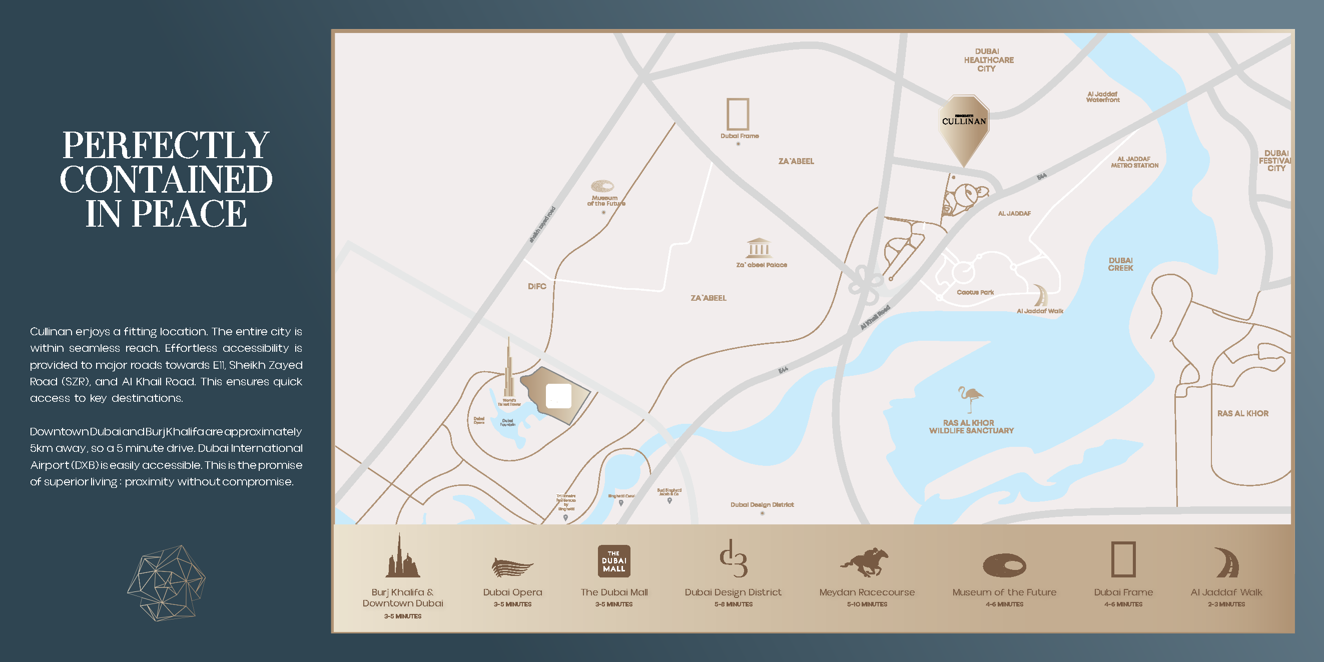 Binghatti Cullinan is a luxurious multifunctional project by Binghatti, located in the prestigious Al Jaddaf community. The development features a basement level, a ground floor, four podium levels, fourteen residential floors, and a rooftop. The project offers a variety of units, including studios, one-, two-, and three-bedroom apartments, as well as commercial spaces.Features