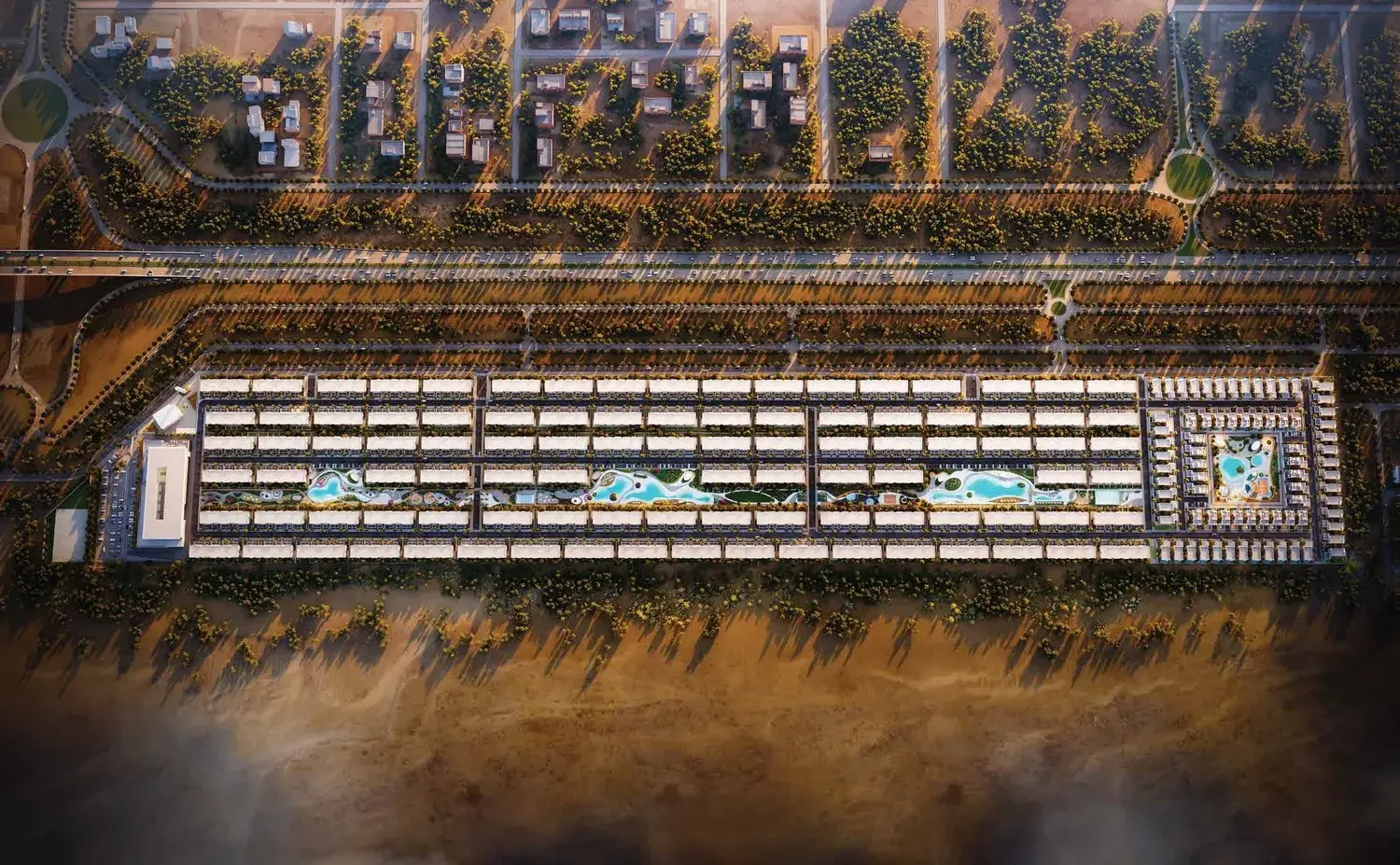 Sukoon by Sanzen is a thoughtfully planned residential community designed as a calm sanctuary away from the pace of the city. The project is shaped around the idea of mindful living, where architecture, landscape, and spatial flow work together to create a balanced and serene everyday environment. Low-rise villas and town residences are arranged to enhance privacy, walkability, and a strong connection to nature, fostering a sense of harmony and retreat.Features