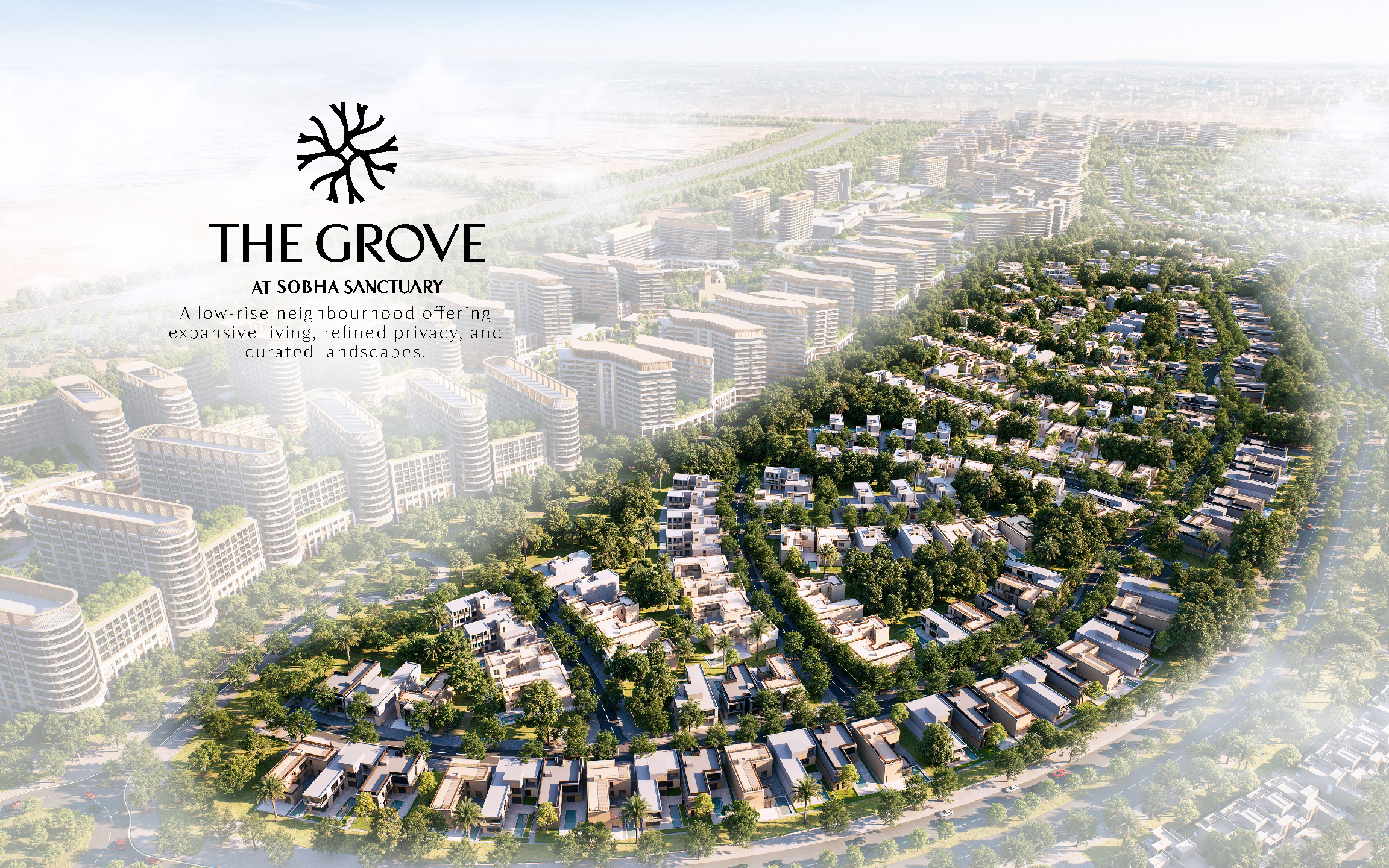 The Grove at Sobha Sanctuary is a low-rise villa neighborhood set within the master-planned Sobha Sanctuary community, designed around nature, wellness, and a strong sense of belonging. The project features spacious 4–6 bedroom estate villas arranged within a blue-green landscape network, where water, greenery, and walkable environments shape everyday living. The architecture emphasizes refined proportions, privacy, and seamless integration with landscaped surroundings, creating a calm residential enclave that balances scale, exclusivity, and connection to the wider Sobha Sanctuary master plan.Features
