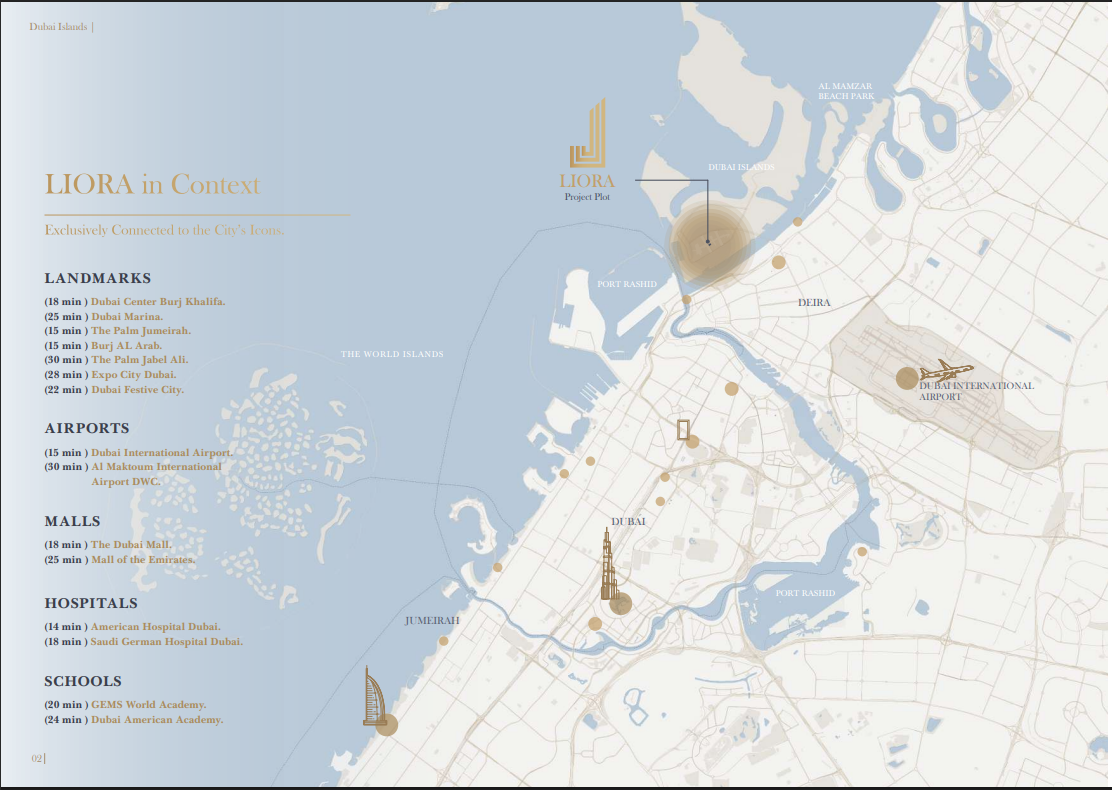 Liora Residences by Jaiedco is a boutique waterfront development located on Dubai Islands, designed to merge modern architectural elegance with a serene island lifestyle. Standing 11 storeys high, the project offers a curated collection of 1, 2, and 3-bedroom apartments that emphasize open-plan living and panoramic views of the Arabian Gulf. Residents benefit from a prime location that balances secluded coastal living with urban connectivity, featuring high-end amenities such as an infinity pool, state-of-the-art fitness center, and lush landscaped gardens, all aimed at providing a resort-like atmosphere for long-term residents and holiday homeowners alike.Features