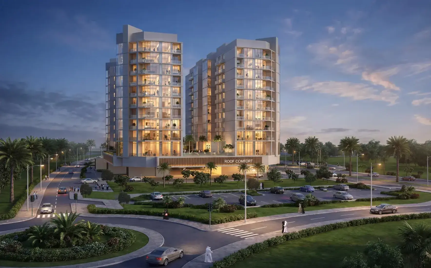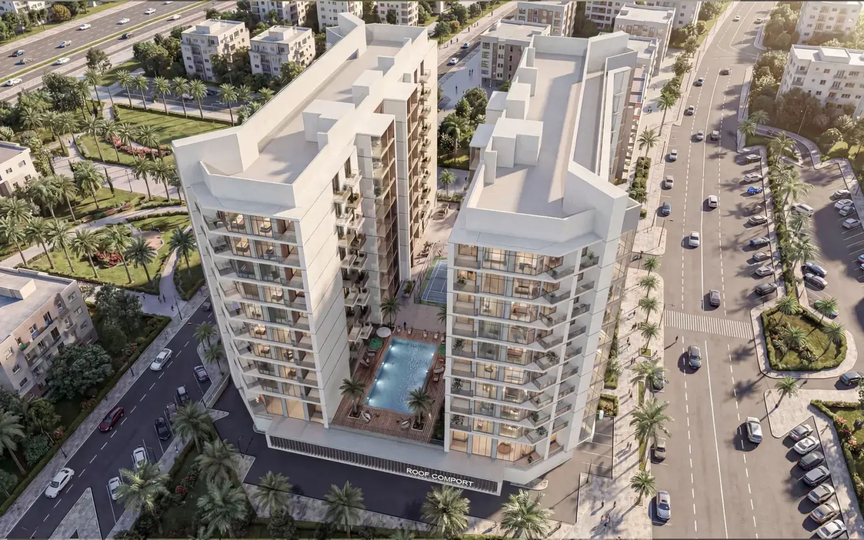 Comfort by Roof is a contemporary residential development by Roof Enterprises & Development that reflects a modern architectural identity, combining clean lines, elegant façades, and carefully planned layouts that maximize space and natural light. The development consists of two modern towers with a ground floor, two podium levels, and ten residential floors. It offers a selection of studios, one-bedroom, and two-bedroom apartments designed for both comfortable living and smart investment.Features